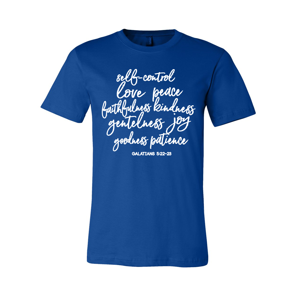 This "Fruit of the Spirit" T-Shirt is a perfect reminder of how we should be living a life yielded to the Holy Spirit. This T-shirt is based off the scripture from Galatians 5:22-23 which states: "But the fruit of the Spirit is love, joy, peace, patience, kindness, goodness, faithfulness, gentleness, self-control; against such things there is no law."