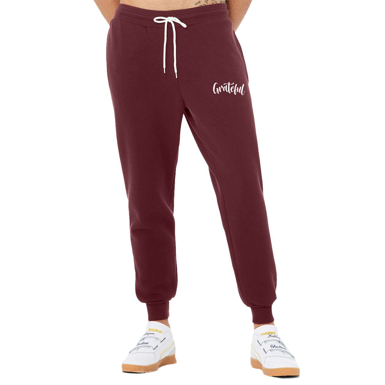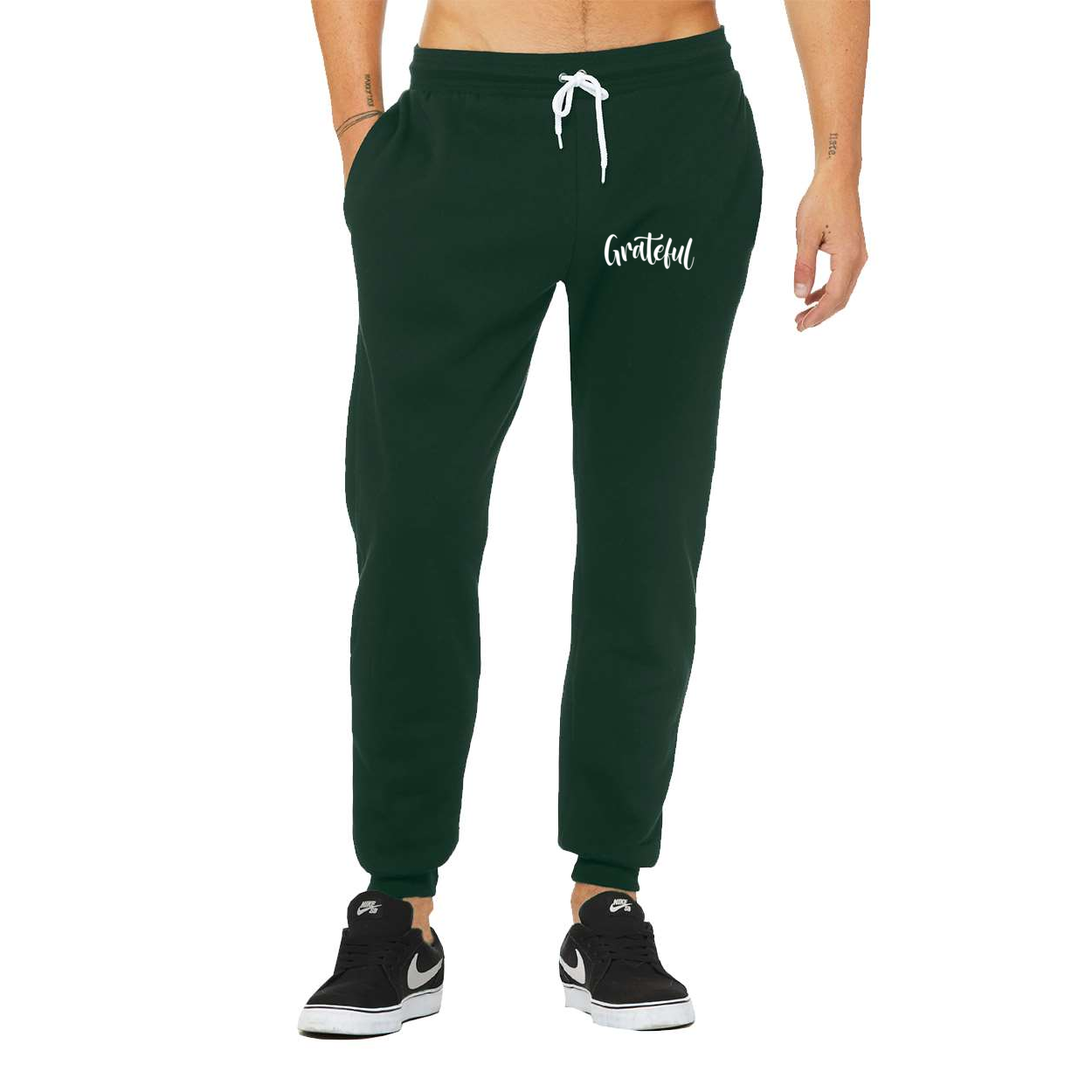 Stay cozy and stylish with our Grateful Unisex Fleece Jogger Sweatpants, designed for ultimate comfort and versatility. Made from ultra-soft fleece, these joggers feature a relaxed fit with an adjustable drawstring waistband, making them perfect for lounging at home, running errands, or casual outings. With convenient side pockets and ribbed ankle cuffs, these sweatpants are both functional and fashionable.