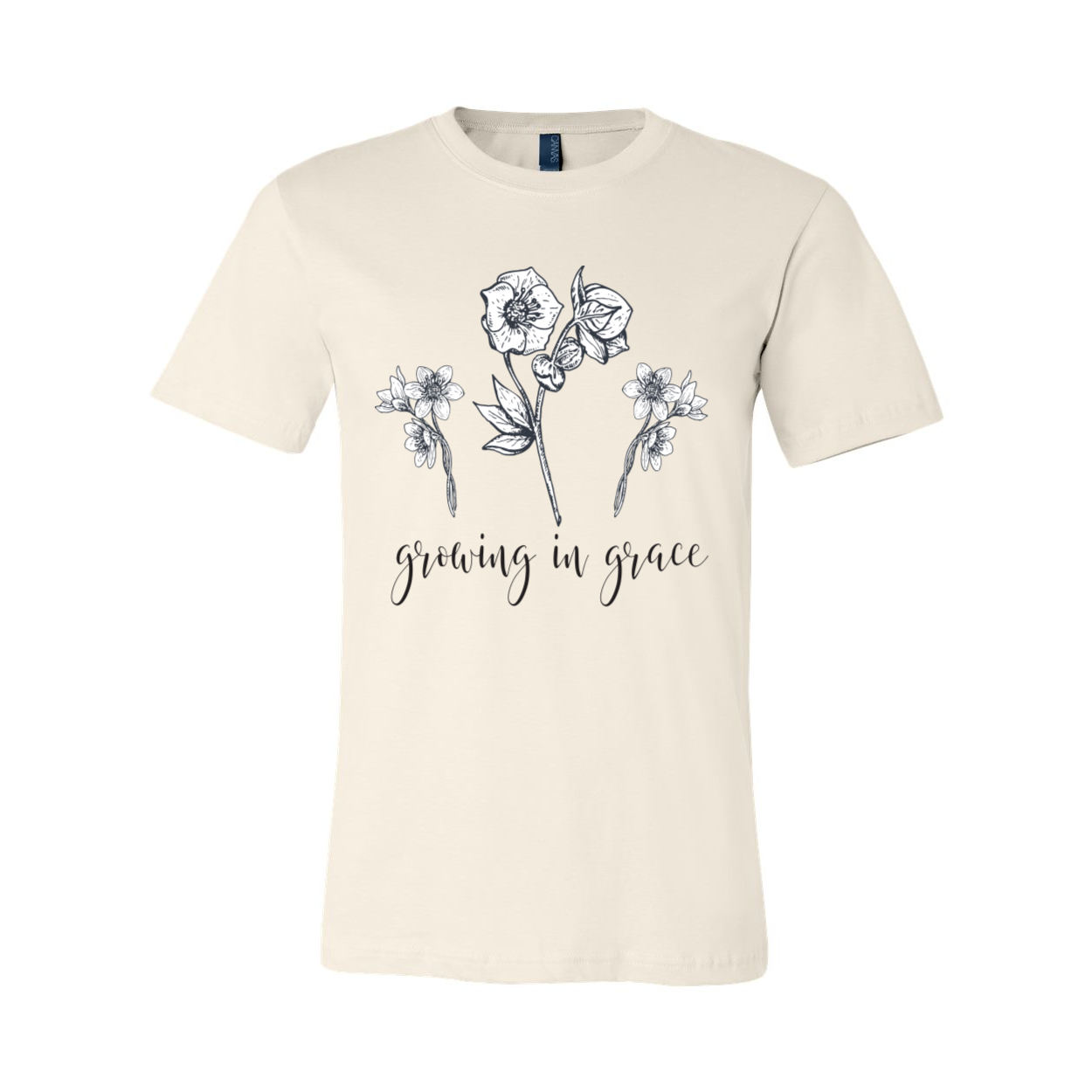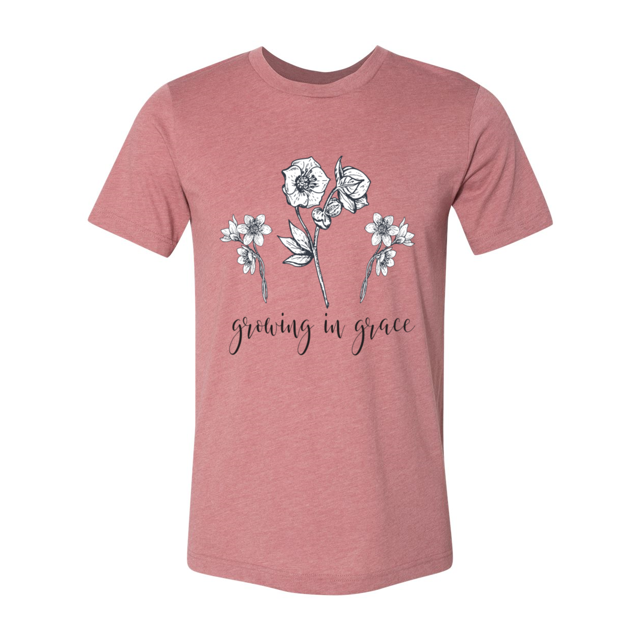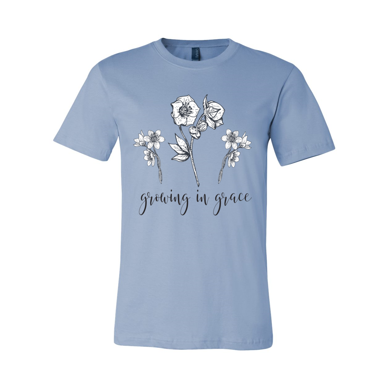 This "Growing in Grace" T-Shirt is the perfect tee to encourage yourself or someone else in their walk with Christ. This T-Shirt is based off of the verse from 2 Peter 3:18 that says, But grow in the grace and knowledge of our Lord and Savior Jesus Christ. To him be glory both now and forever! Amen.